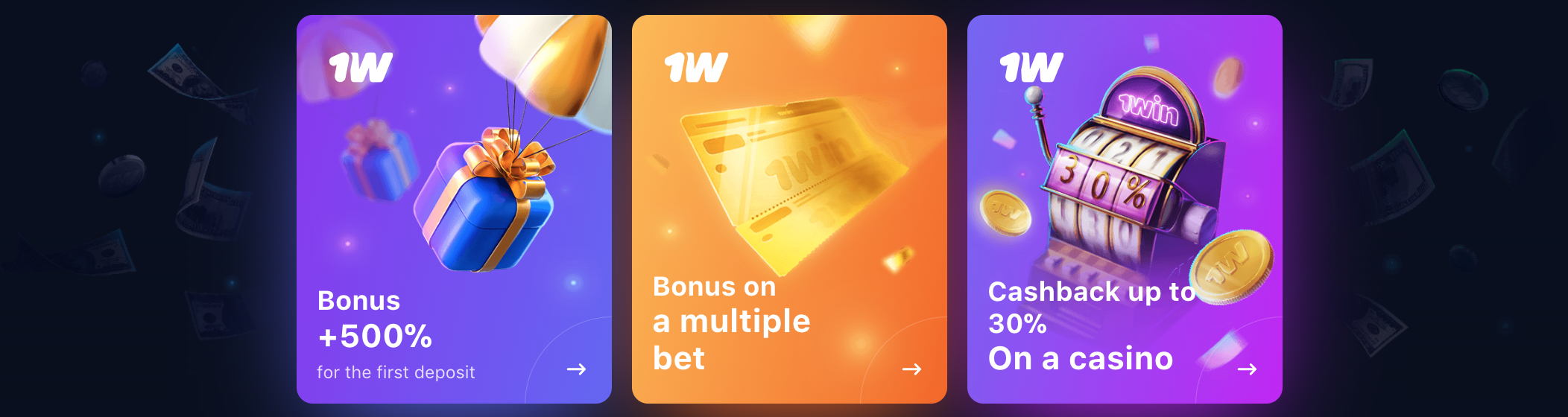 The 1win welcome bonus applies to your first four deposits, with a maximum of 500% of the amount. Want to receive a gift like this? Follow these step-by-step instructions: